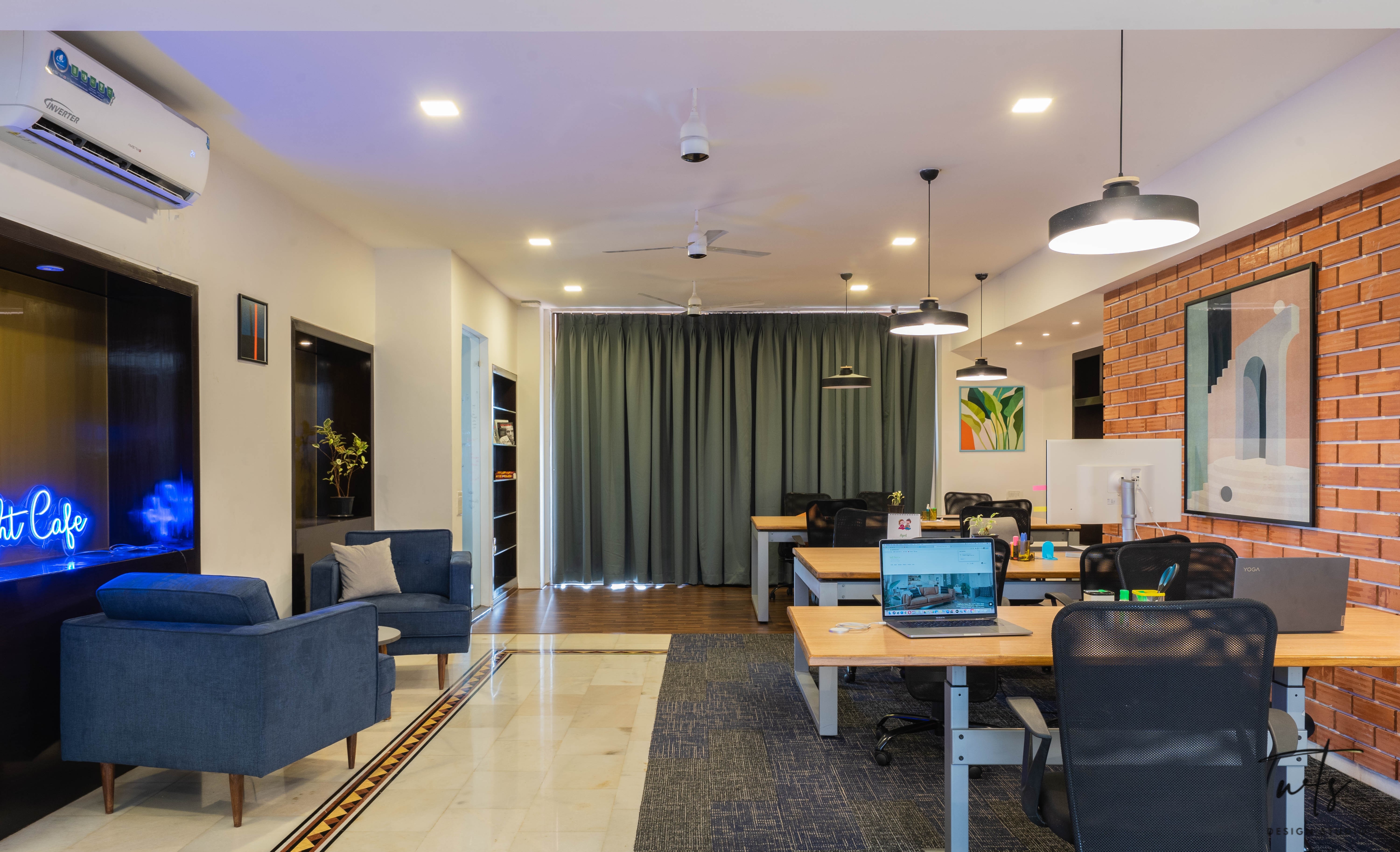 The design approach focused on breaking away from the rigidity of traditional offices to create an environment that feels energetic, open, and aligned with the brand's culture of innovation.