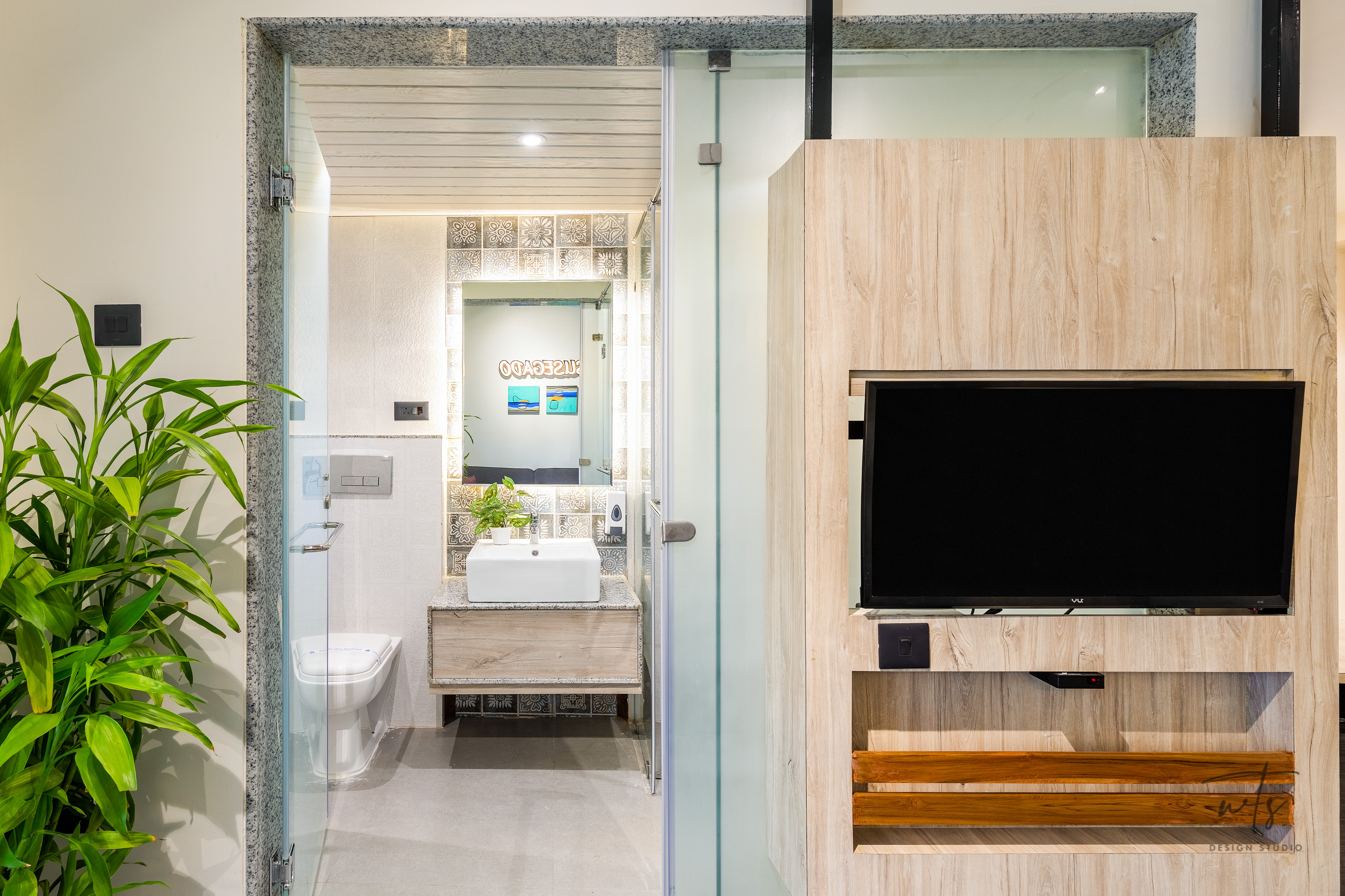 A key transformation involved opening the bathroom wall into frosted glass, allowing filtered light and visual continuity - expanding the compact suite without compromising privacy. Each element, from furniture to lighting, was curated to support the narrative of lightness, comfort, and Goan ease.